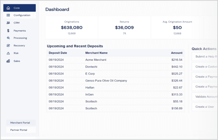 A robust ACH and RDC solution designed for scalability and operational excellence. With built-in APIs, you can integrate ACH processing with your CRM, ERP, or other systems to create efficient, automated workflows.